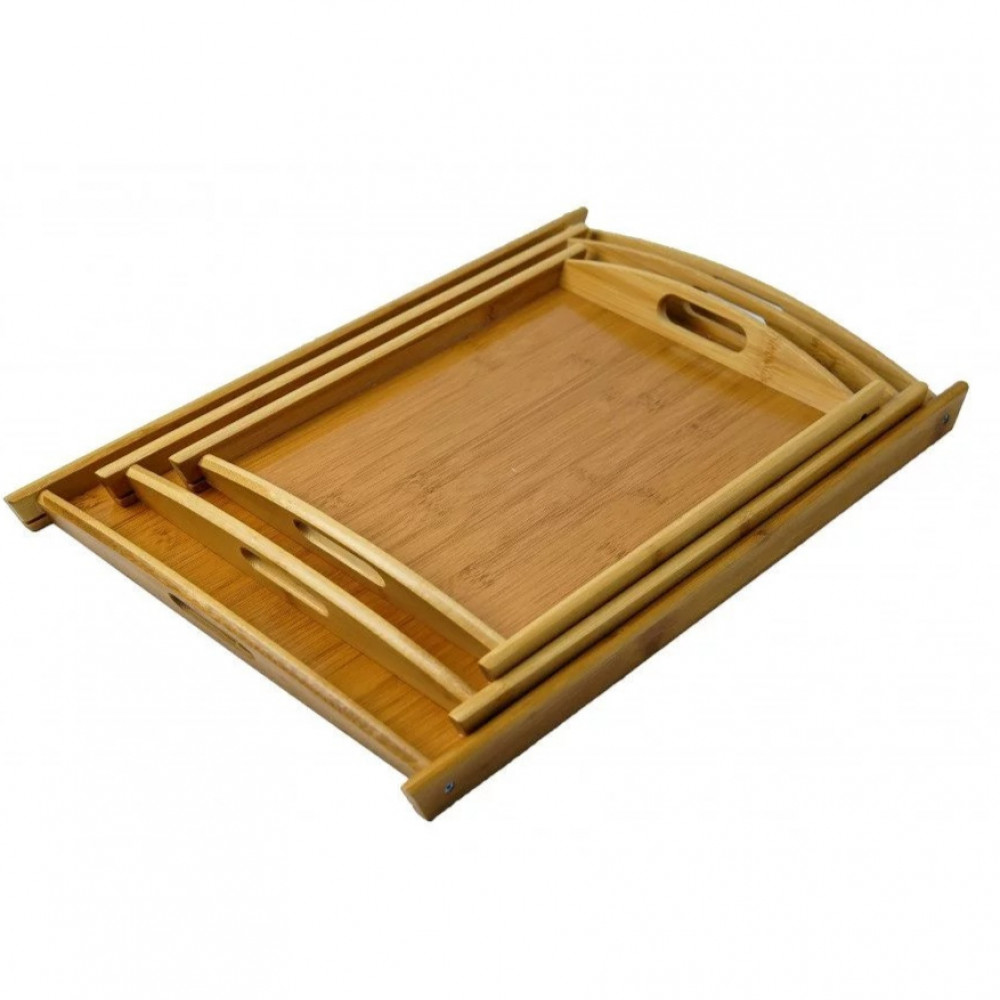 صينية تقديم بامبو خشبية مربعة الشكل ثلاثة قطع